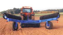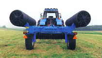 von 5,5 m - 9,20 m mit Warntafeln und Beleuchtung. Einfache und schnelle Umstellung von der Transport- in die Arbeitsstellung. Kein Absteigen mehr, denn bei diesen Maschinen kann vom Schlepper aus entriegelt werden. Beste Bodenanpassung durch Dreierteilung, gleichmäßige Gewichtsverteilung über die gesamte Walze.